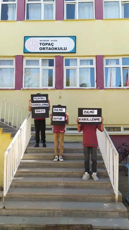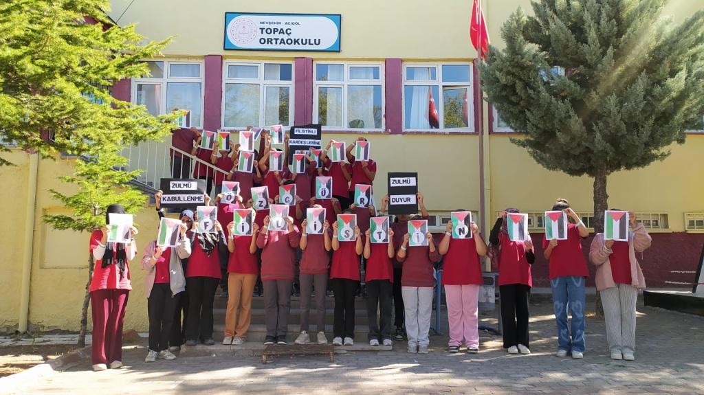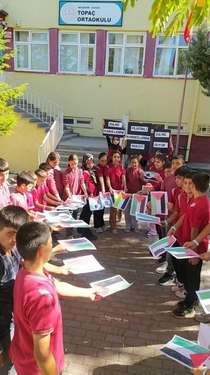 Filistin'de yaşanan insan hakları ihlallerinin sona erdirilmesine yönelik kararlı duruşumuzu somut biçimde ortaya koymak ve gençlerimizin insan hakları, demokrasi ve ortak sorumluluk bilincine ilişkin duyarlılığını en üst düzeyde güçlendirmek amacıyla 7 Ekim Salı günü okulumuzda Filistin Farkındalık Etkinlikleri gerçekleştirildi.